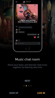 「SoundCloud」と「Spotify」、どちらかのアプリと連携させて使う音楽を同期してチャットできるアプリです。