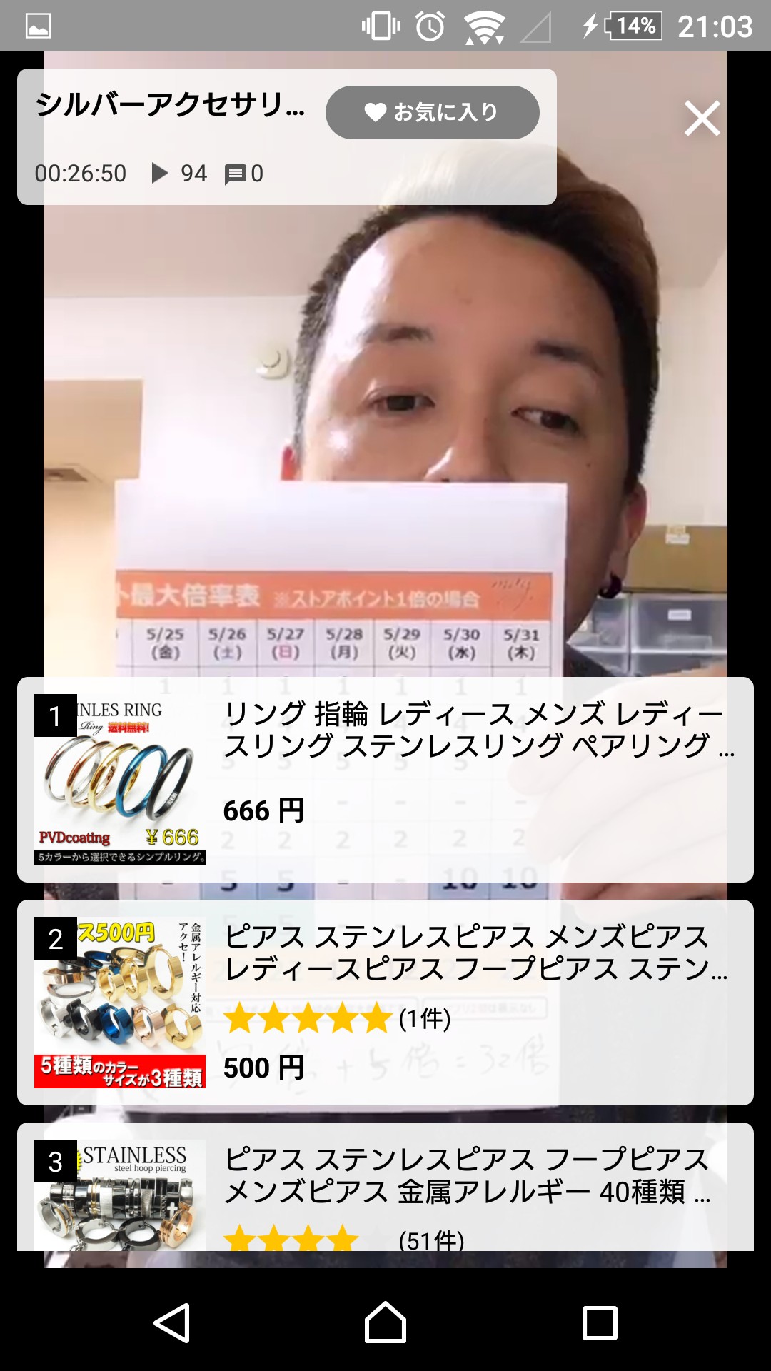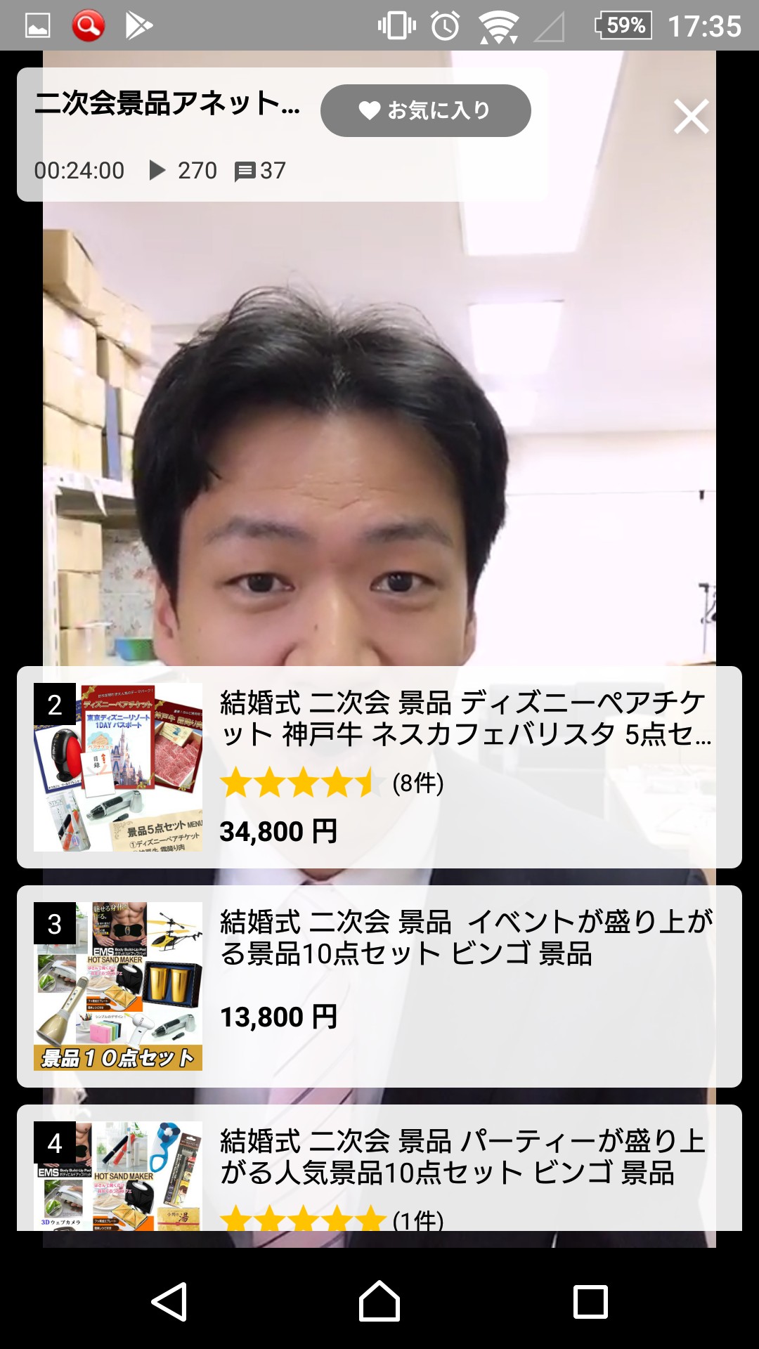 - ライブ画面を右にスワイプで紹介されている商品一覧が表示