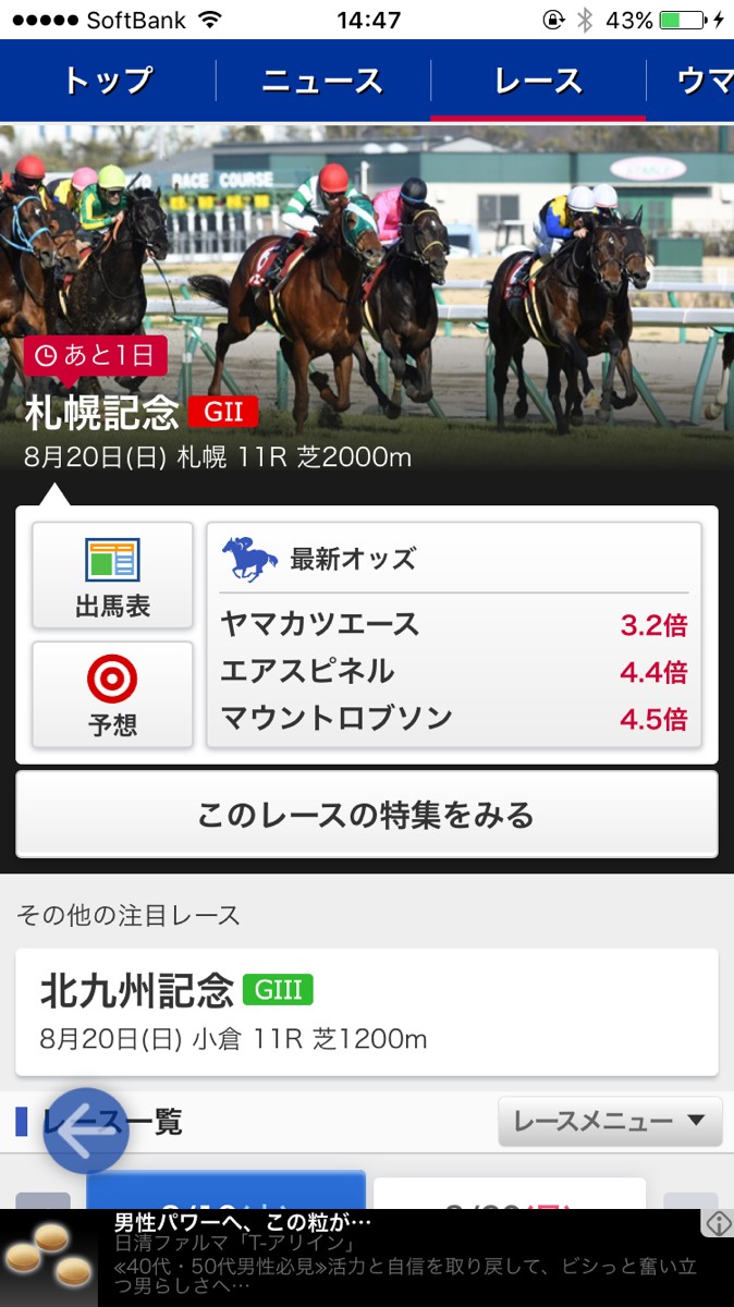 このように、特別難しい操作もなく、簡単に競馬のたくさんの情報をこのアプリひとつで得ることが可能です。