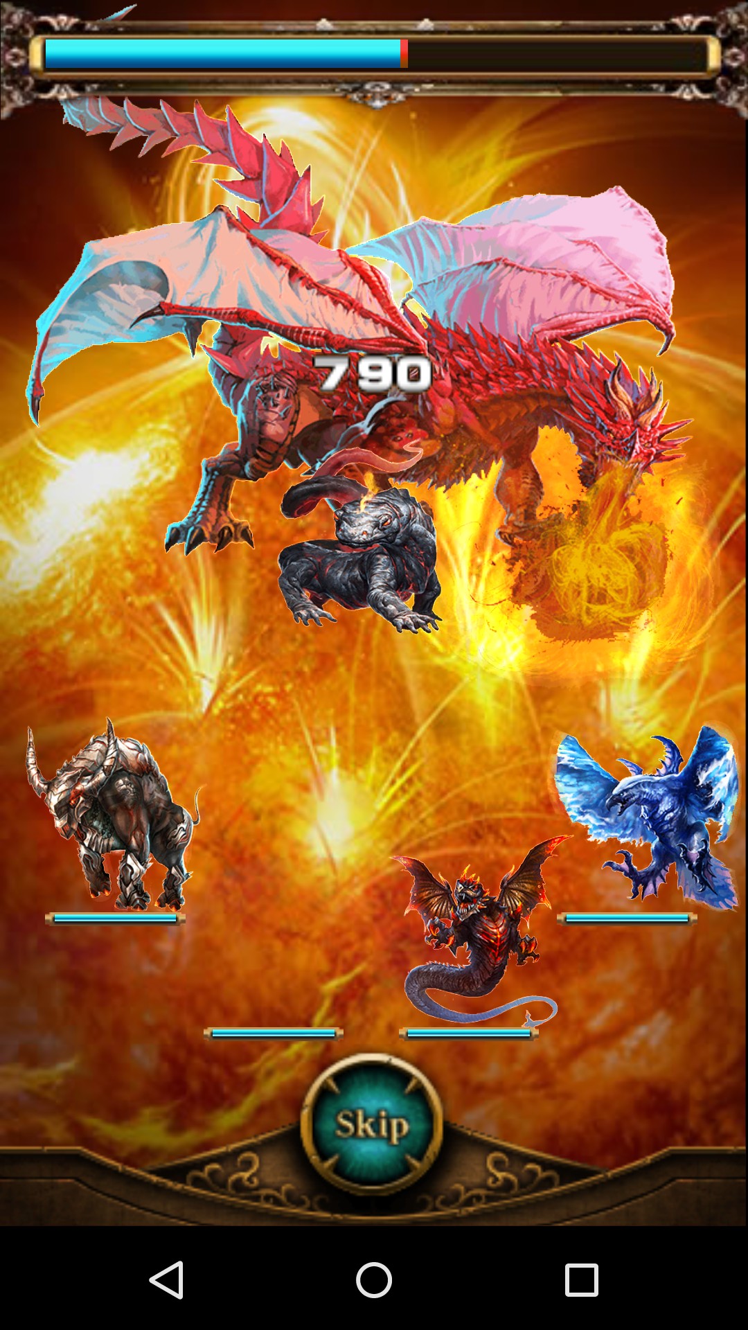 ボタンを押すと画面が切り替わることが今までのソシャゲでしたが、今作ではドラゴンが炎を吐いて敵を倒し、その数で達成度が高まるのです。