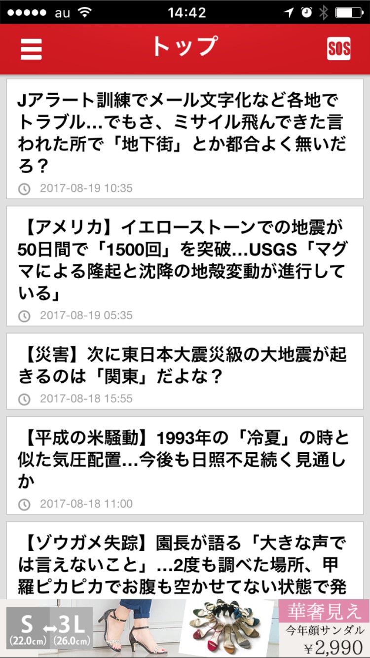 「天変地異のまとめ速報~天地混沌の兆」は、いつ起こるか予測できない天変地異にまつわる前兆や噂を拾って伝えてくれるアプリです。ニュースやまとめサイトからの情報だけでなく、研究機関のデータやその道の第一人者とされる人のブログなど、幅広く網羅した情報が分かることが特徴的です。天変地異が起きた時に必要な情報だけでなく、サバイバル術やアラート音などの実用機能もあります。このアプリひとつあれば、備えあれば憂いなし!心強い味方になってくれるでしょう。