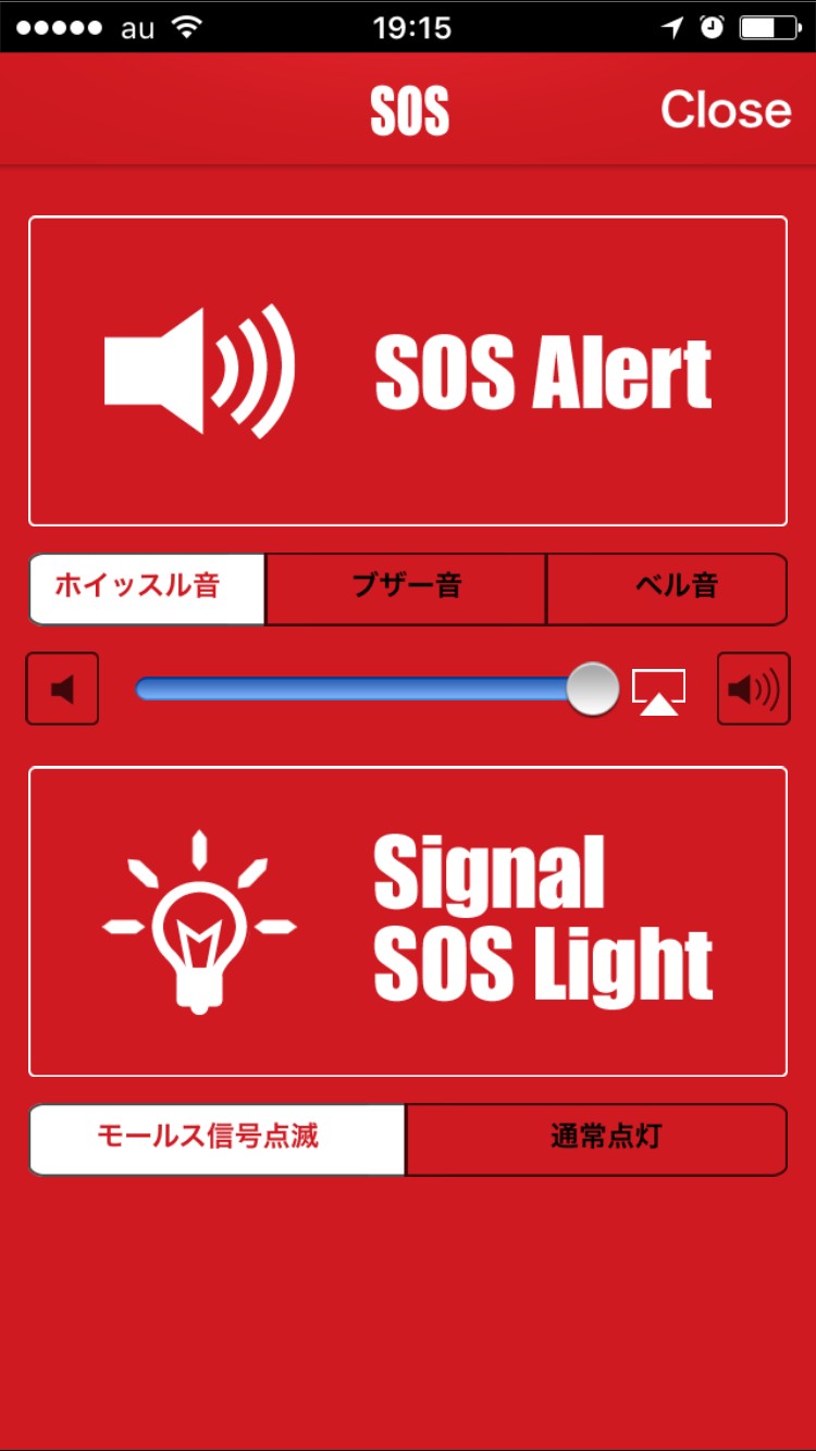 いざという時に役に立つSOS音やライト機能が付いています。どのページを読んでいても、すぐSOSアラートができるようボタンが常に表示されています。