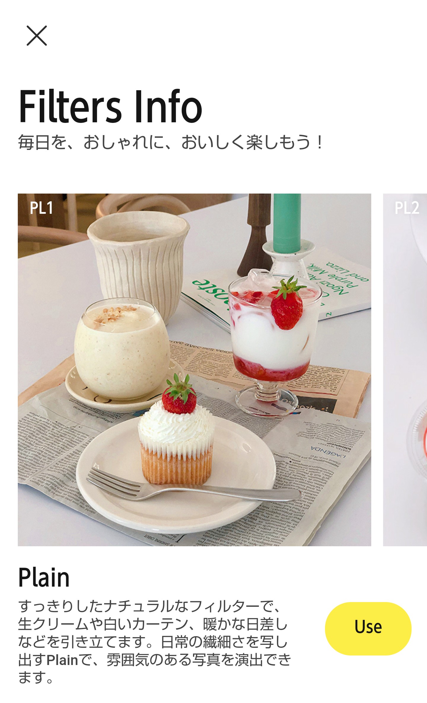 - 食べ物に合わせたおすすめフィルターで迷わず撮影