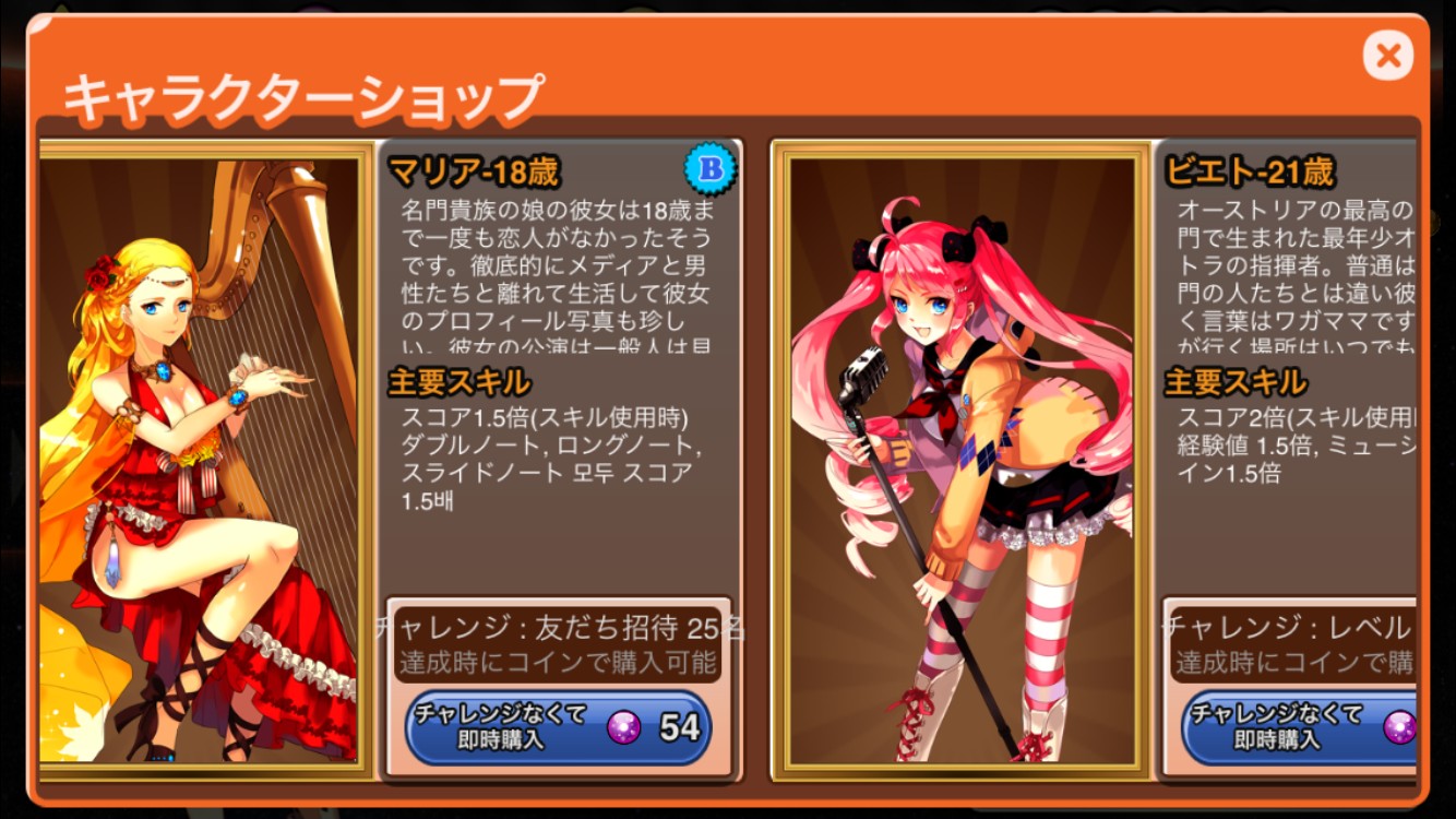 ゲームを始める際に、自分のパートナーとなるキャラクターを3人の中から選ぶことになりますが、レベルアップや友達招待などでパートナーに選べるキャラが増えていきます。それぞれ能力値が違ううえに、可愛いキャラやハンサム系など個性豊かなキャラクターたちが揃っているので、その中から自分の好きなキャラを選びましょう。狙いのキャラクターを解放するために、音ゲーのプレイもますます楽しくできそうです。