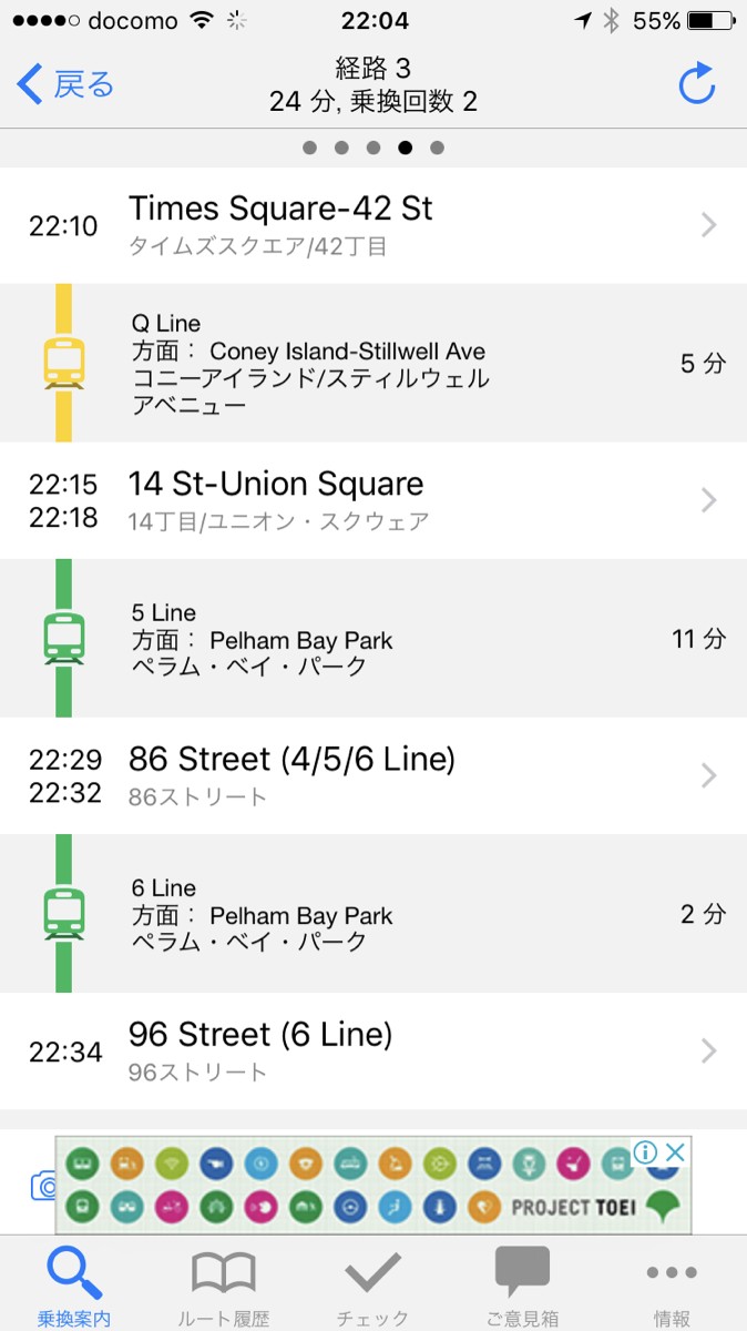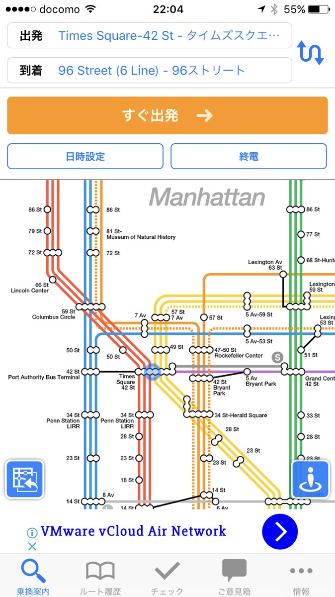 - 「アメリカ乗換案内 圏外で使える無料のニューヨークやシカゴの乗換案内 by NAVITIME」を実際に使ってみた事例