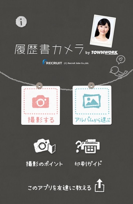 証明写真が撮れるアプリ「証明写真~かんたん・キレイな履歴書カメラ ( by タウンワーク )」