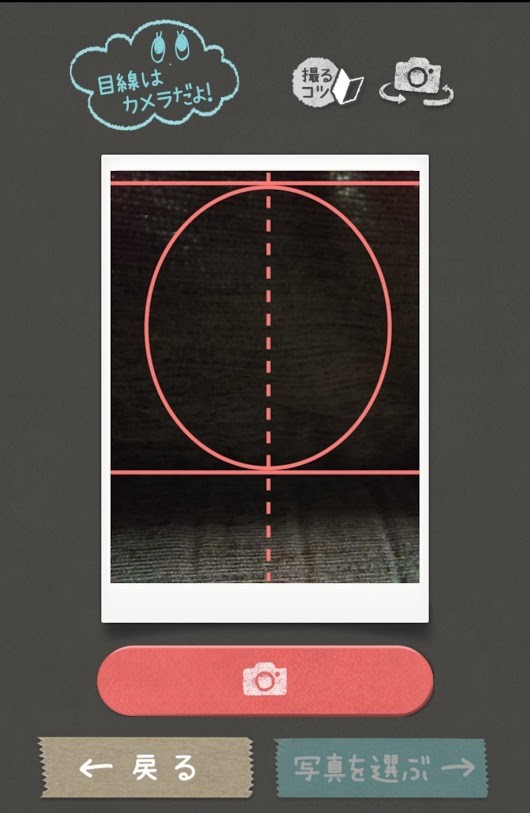 2.画面の丸の中に顔がおさまるように注意しながら撮影する
