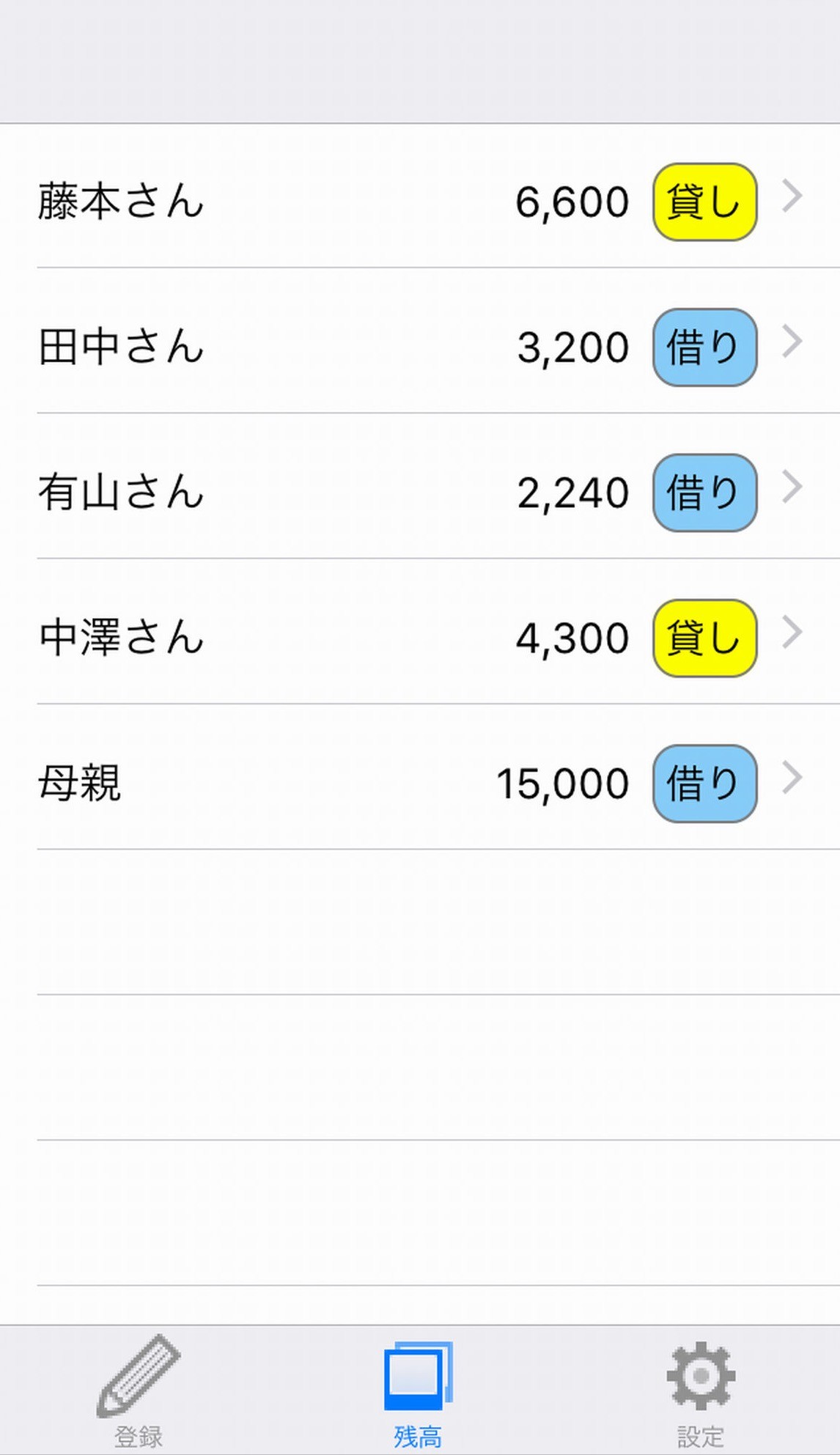 使い方はいたって簡単で、①誰に②いくら③いつまでを入力するだけです。そうするだけで、このアプリは「誰に合計いくら貸しているのか、借りているのか」を見やすい形で集計し、表示してくれます。