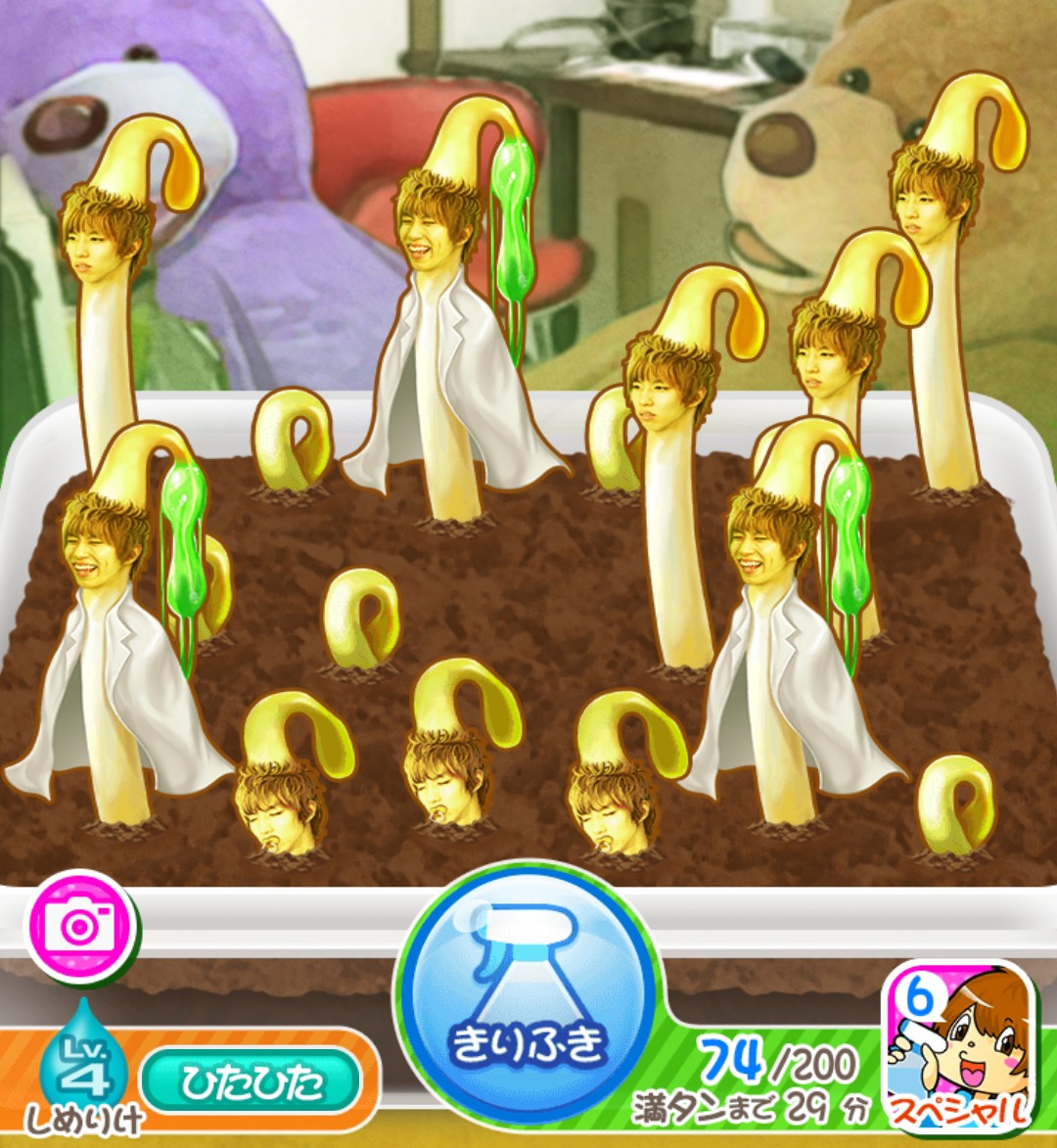 放置しておけば自動的に生えるもやし達ですが、画面内の霧吹きで水をたっぷり与えてあげると育成を早めることも出来るので、サクサク育てて友情出演するyoutuberとのコミカルなストーリーを楽しんでいきましょう。