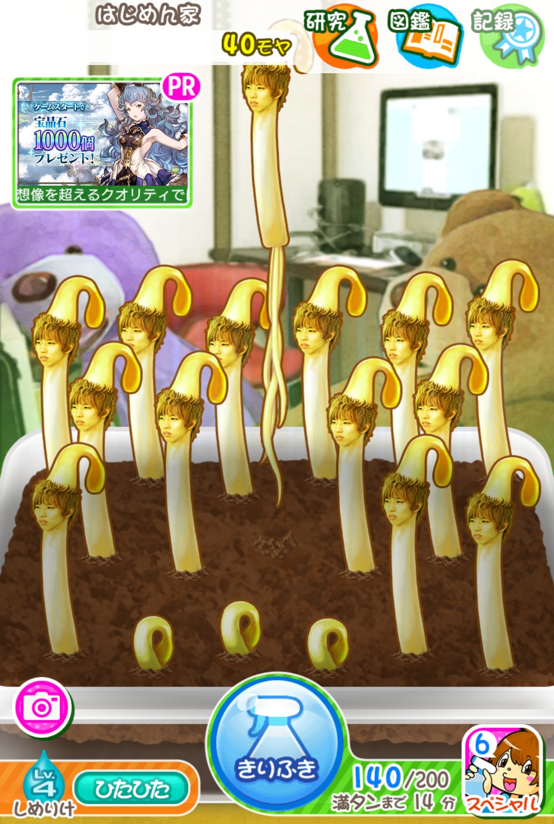 増え続けるもやしを引っこ抜いていくと新種のはじめもやしを発見するので、もやしポイントを集めて実験を繰り返して色んなもやしをコレクションしていきましょう。
