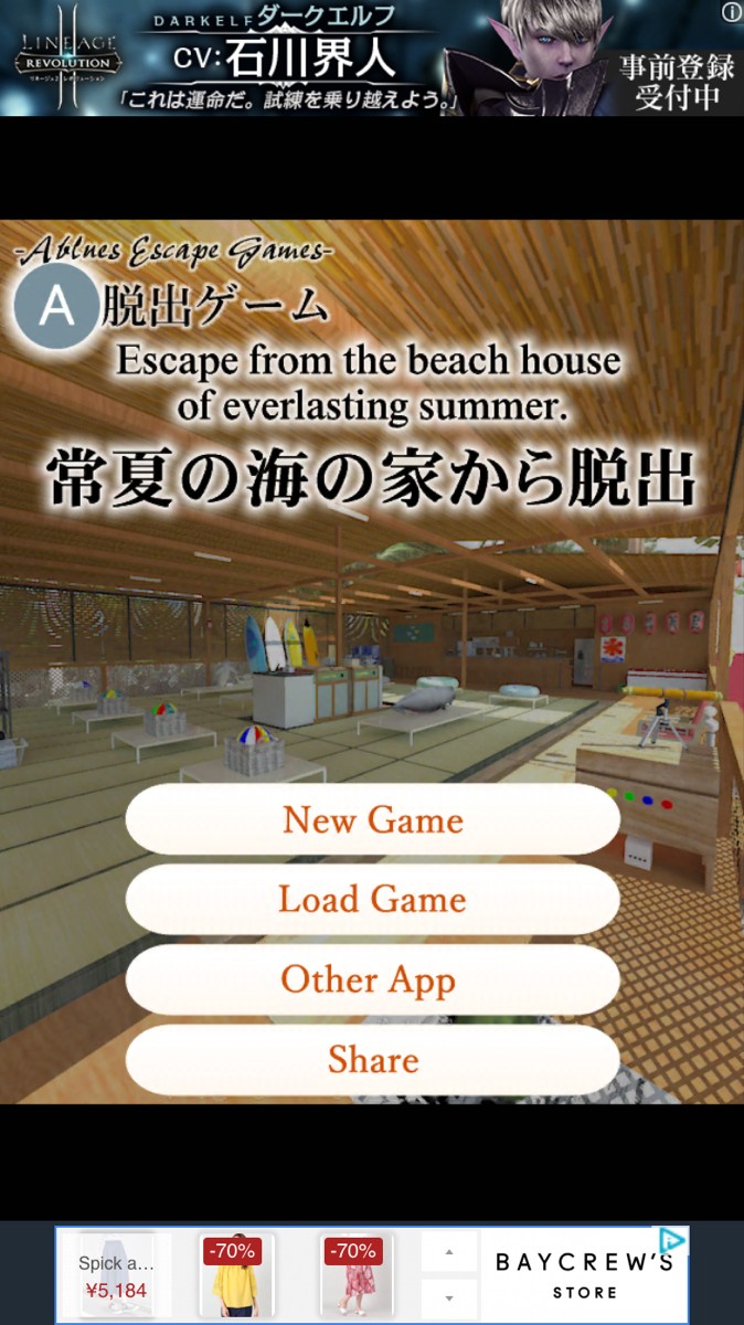 「脱出ゲーム 常夏の海の家から脱出」のアプリを実際に試してみました。