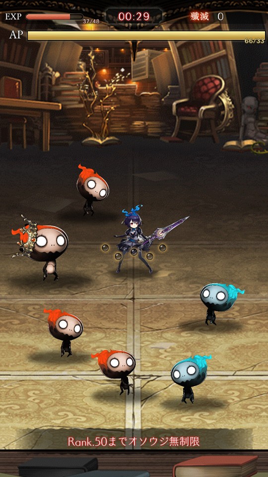 まずはオソウジを行いランクを上昇させ、モノガタリをクリアしていきましょう。ランク50までは制限なくオソウジができるのでどんどん倒して、ダークな物語を一気に体験してみてください。