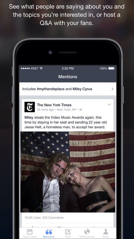 「Facebook Mentions」は簡単にファンやフォロワーとの交流を楽しめる