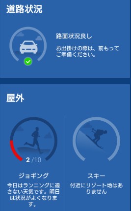 ジョギングのアイコンをタップすると、天候の解説とランニングへのアドバイスが表示されます。
