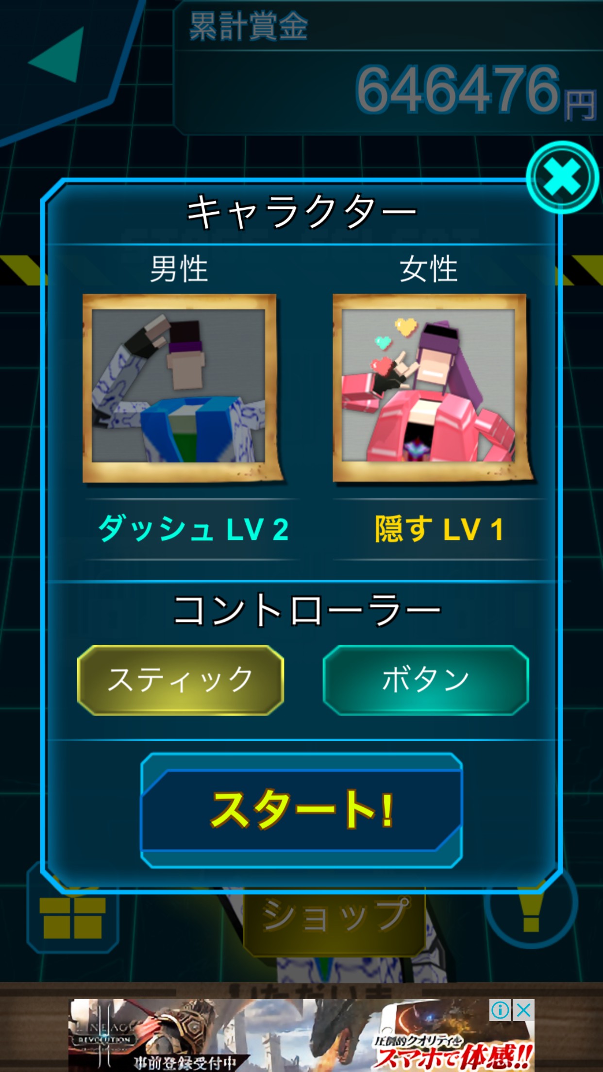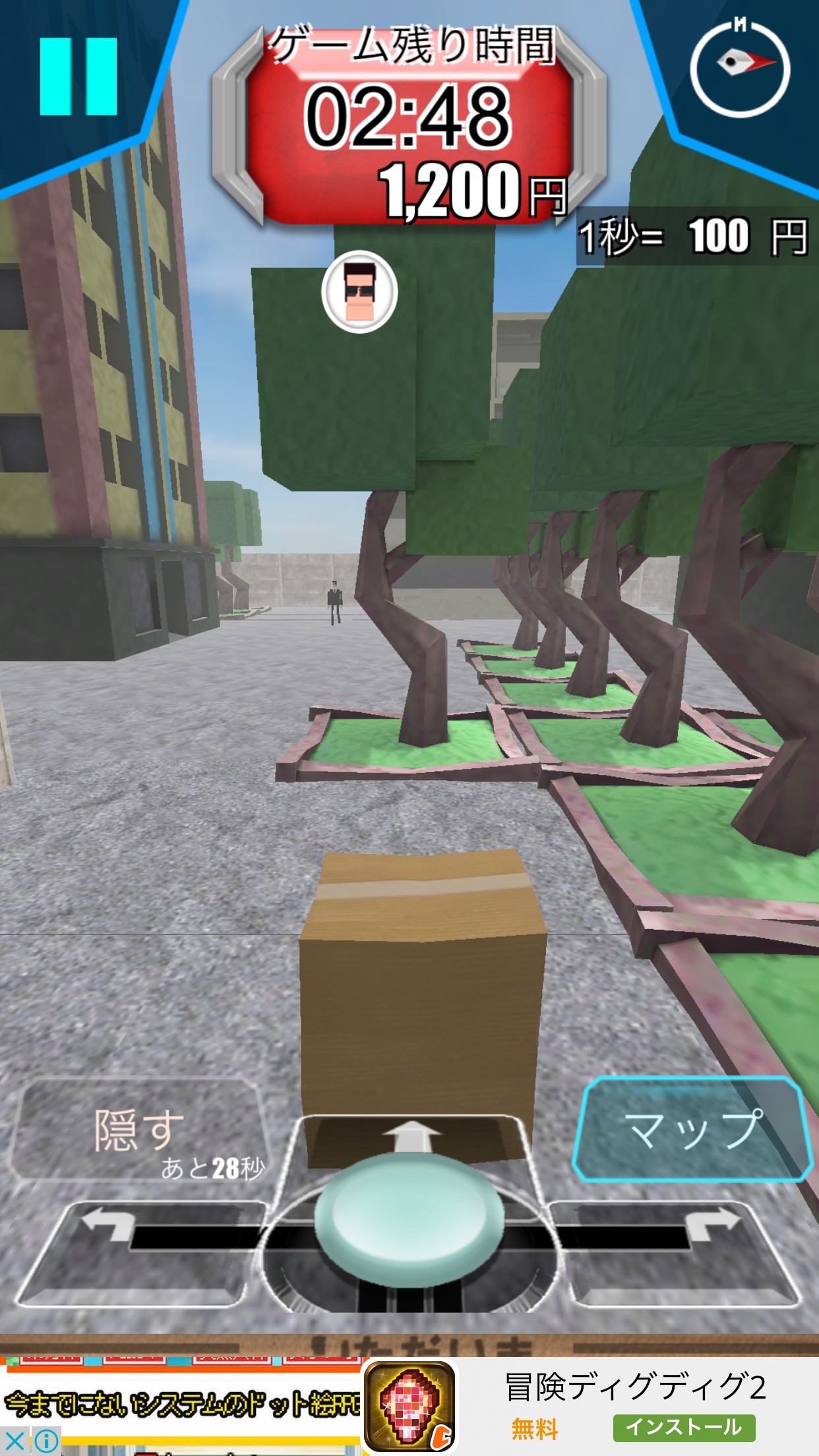 ハンターに捕まっても、捕まらずにクリアしても広告を最後まで見ることで報酬が数倍にあがります。