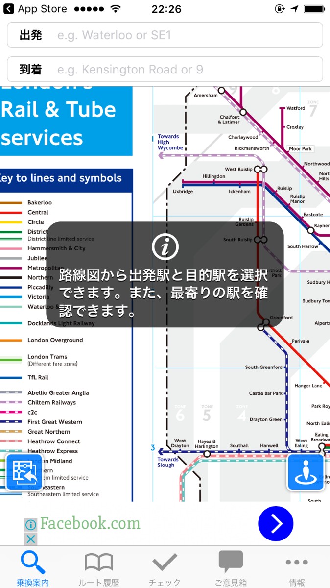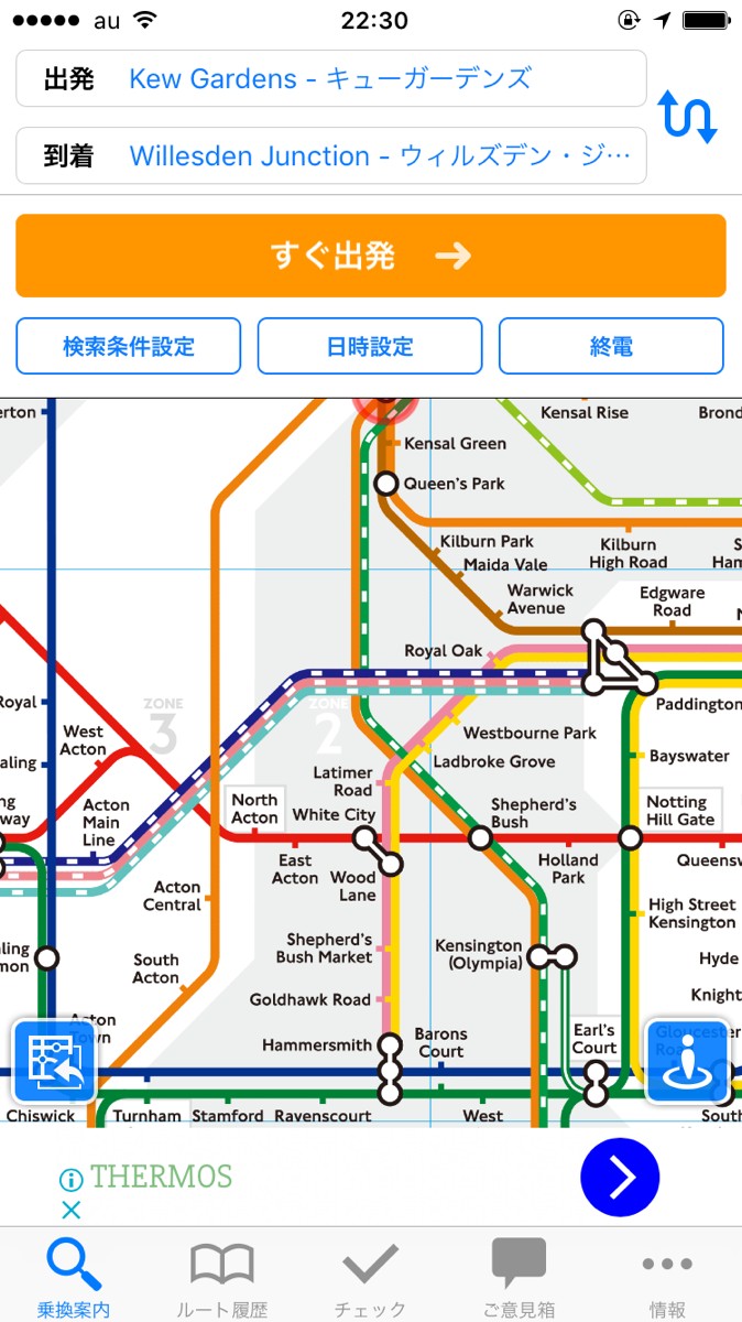 『ロンドン乗換案内 - by NAVITIME』を実際に使ってみましょう。