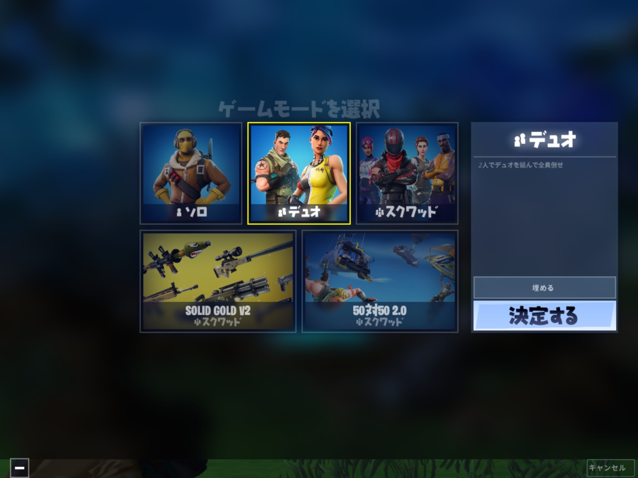 - 1人プレイはもちろん、2人で戦う「デュオ」、4人でパーティを作って戦う「スクワッド」などの対戦モードが楽しめます。