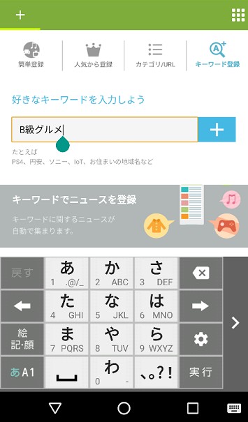 「簡単登録」「人気から登録」など、4つの方法がありますが、ここでは「キーワード登録」を試してみます。