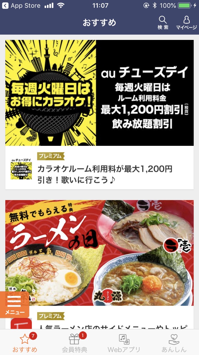 - 月曜日から日曜日まで日替わりでお得な特典が提供される!人気クーポンの提供もプッシュ通知でお知らせ!
