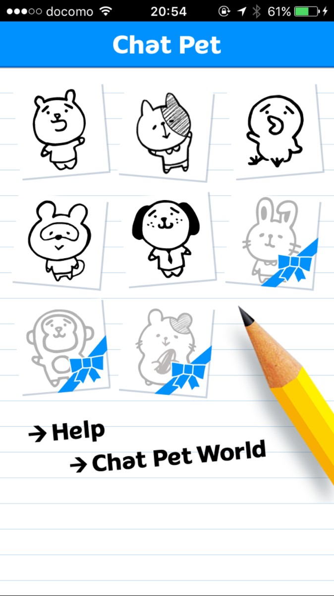アプリを起動すると、すぐにくまやネコ、ひよこにたぬきなどの可愛らしいキャタクターのイラストが表示されます。自分の好きなキャラクターを選択しましょう。
