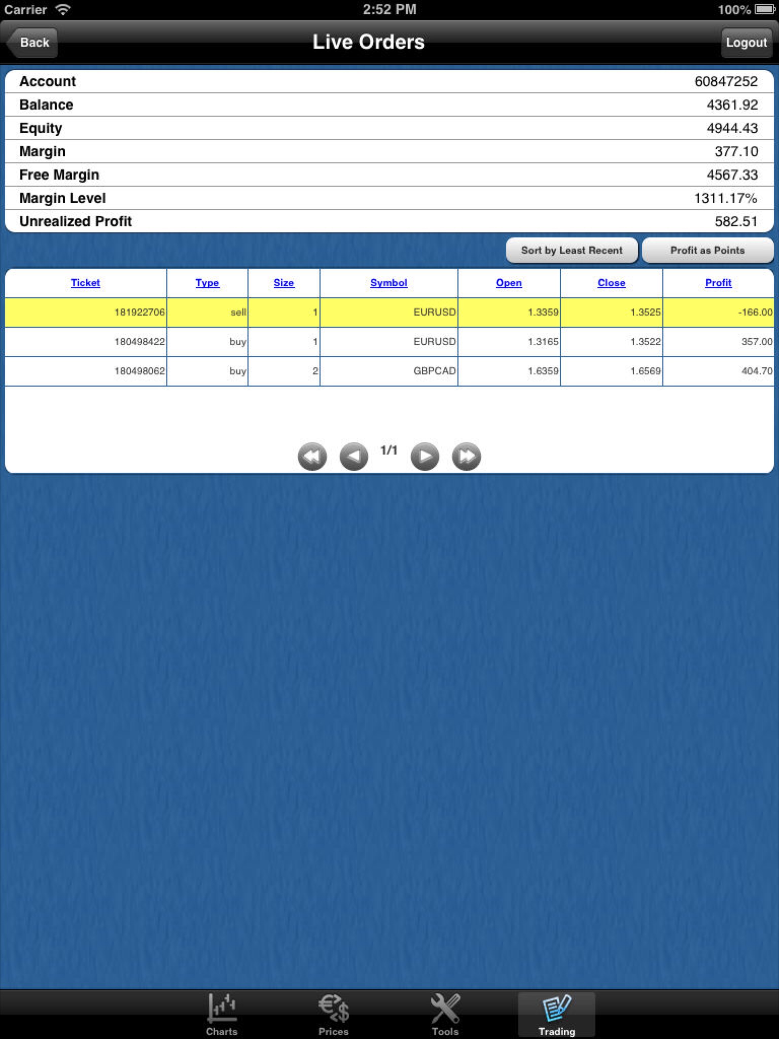 登録不要の標準機能に加えて、今作では、利用可能な最先端のモバイルMT4取引システムへのアクセスも提供しています。「Forex On The Go」では、iPhone向けに特別に設計された美しいモバイルインターフェースを通じて、MT4アカウントでライブ取引を迅速かつ簡単に監視することができます。