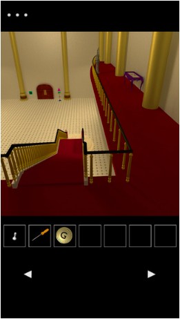 舞台となるのは洋風に作られた綺麗なホール。扉には鍵がかかり外に出ることができません。鍵さえ見つかれば扉は開くはずですが、見知らぬ場所でいったいどうすれば発見できるのでしょうか。部屋の様々なところに散りばめられた手がかりや、見つけたアイテムを駆使して、様々な仕掛けを1つずつクリアしていきましょう。部屋には解きごたえのある謎がたくさん用意され、程よい頭の体操にもってこいのアプリです。アイテムは意外なところに隠されているかもしれません。とにかくいろいろなところに目を向けて、慎重に調べていってくださいね。