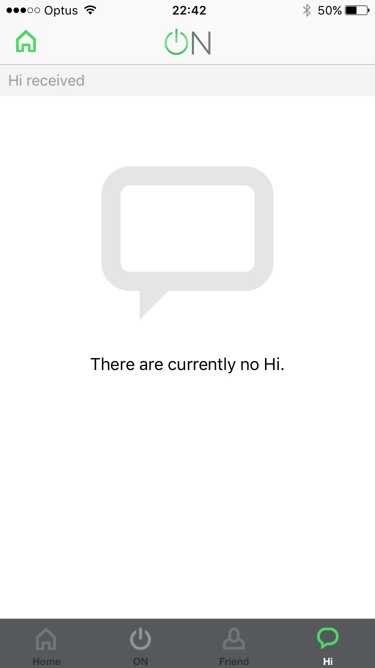 ボタンの上にメッセージを入力することができるので、今の気分を書いたりしてボタンをタップしましょう。ONにするとボタンが緑色に光ります。