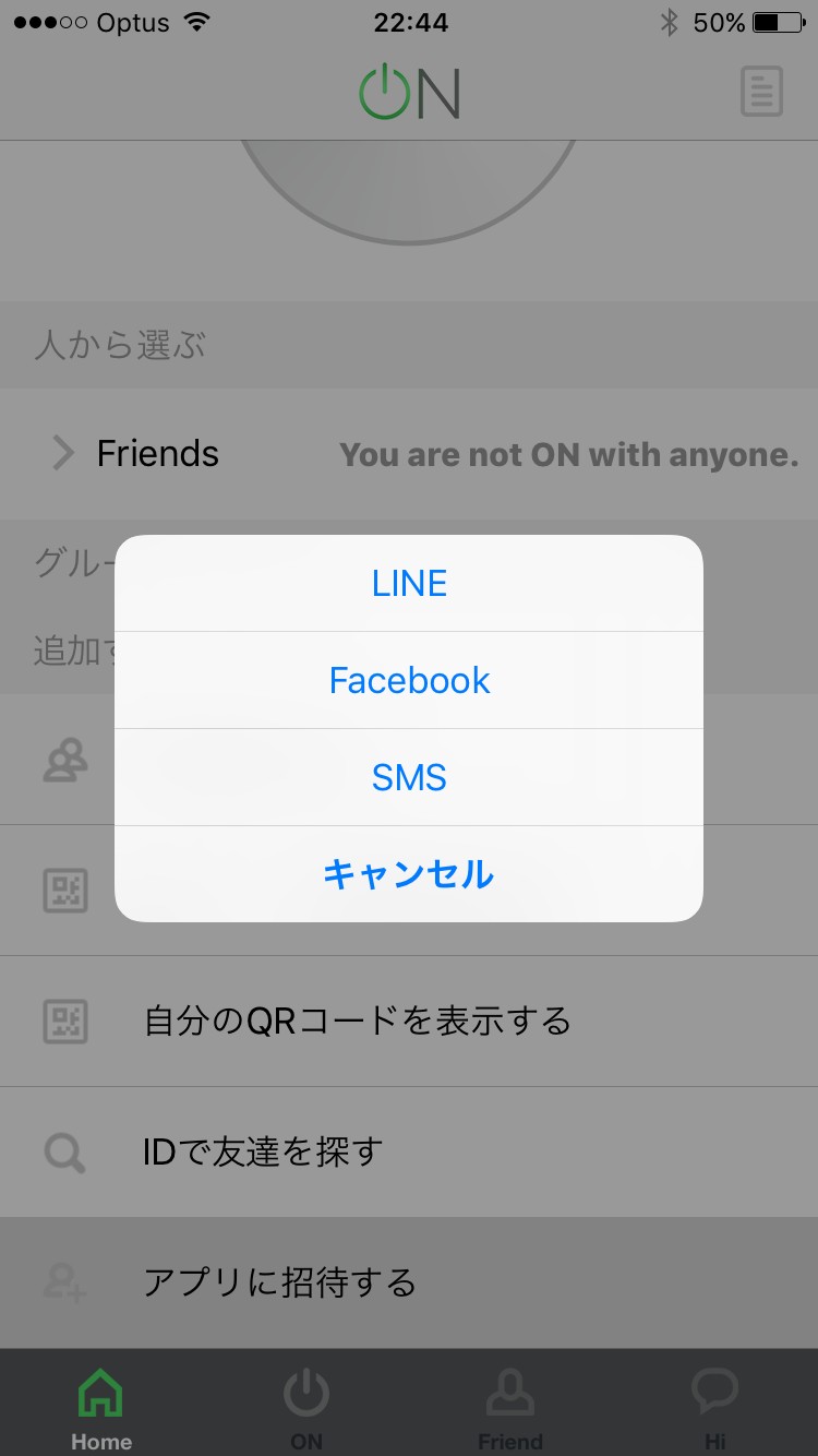 ホーム画面には大きなONボタンの他に友達を招待したり、グループを作成したり、特定の人に向けてONをすることができます。