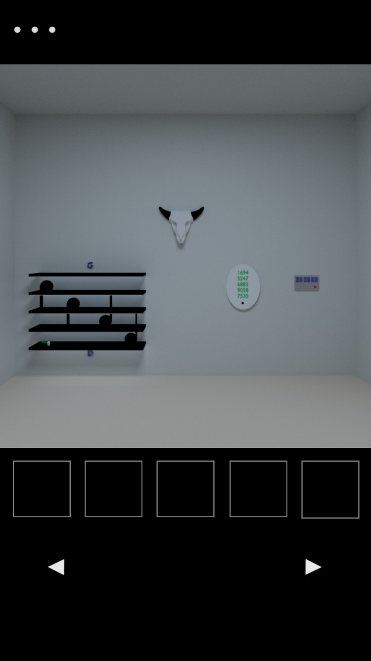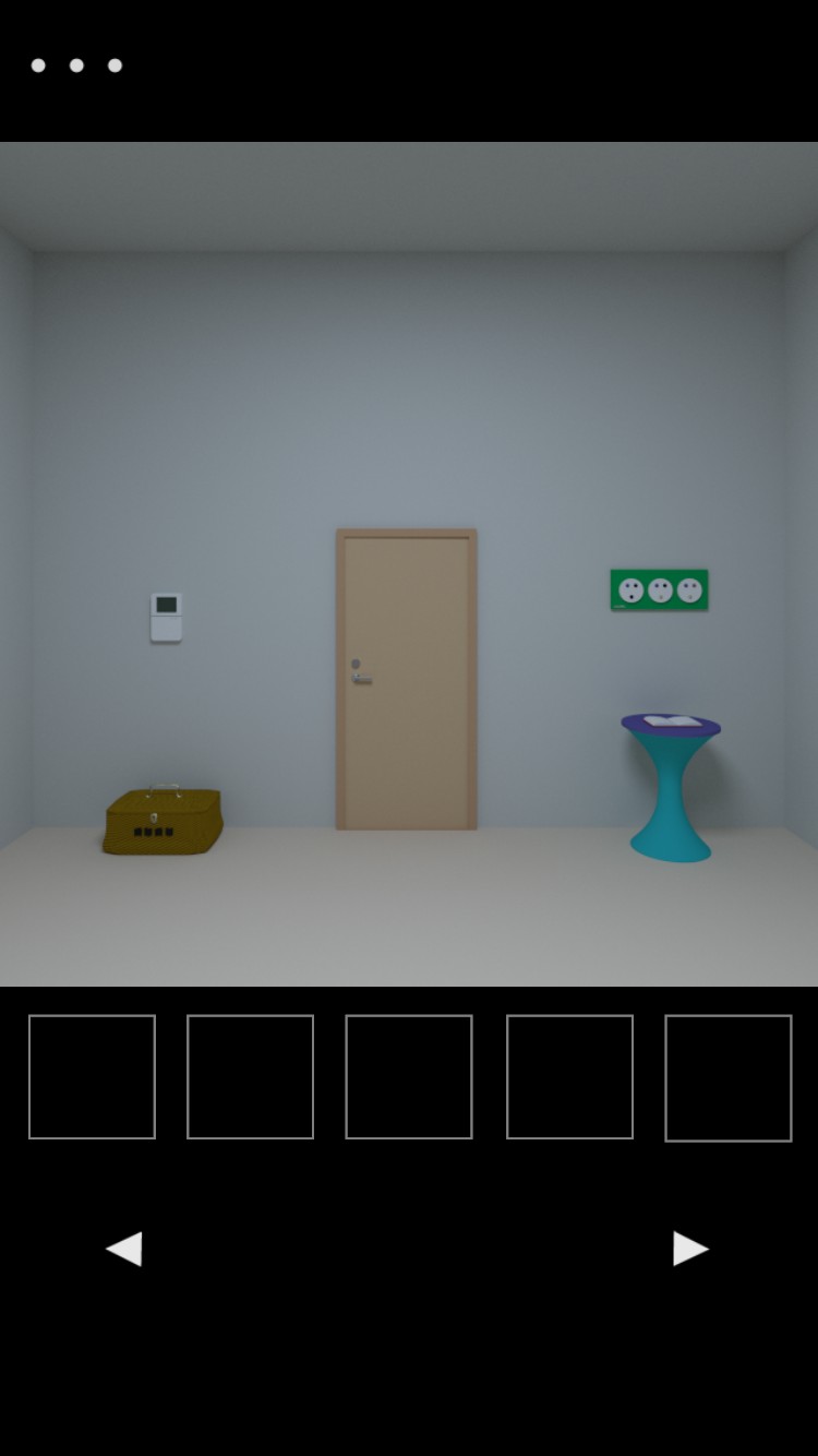 「脱出ゲーム Bath Tub」を無料でダウンロードしてアプリを開くとタイトル画面もなくすぐに部屋の画面になります。四角いボタンが5つありここに取ったアイテムが表示されます。アイテムは5つ以上は取ることができないので、持ち物がいっぱいになったらいらないアイテムを元に戻したりしながら新しいものをとっていきます。このアイテムを5つしか取れない縛りもなかなかゲームを難しくさせています。