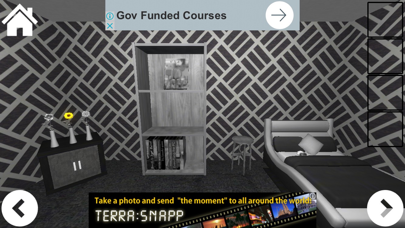 モノクロの部屋はなんだかお洒落でアーティスティックな雰囲気のデザインです。スタイリッシュなゲームデザインなので脱出ゲームをしていてもお洒落でスマートに見えそうですね。
