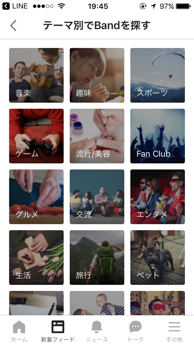 「新着フィード」のタブでは、日々誰かが形成している数多くのBANDがテーマ別や人気のBANDなどで紹介されています。