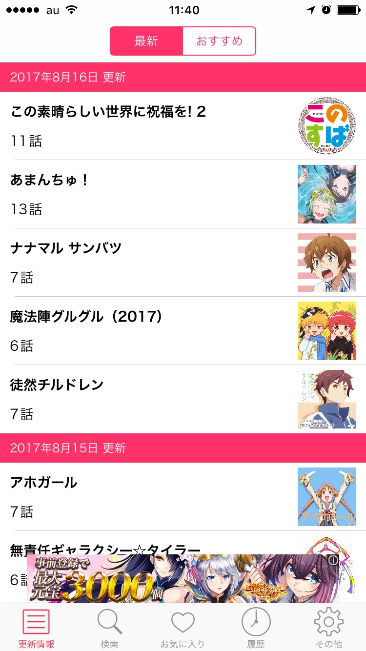 このアプリは、無料で制限なくアニメが見放題のアプリです。見逃したアニメもを探すことも、最新作をキャッチすることも簡単にできます。いつでもどこでもアニメが見れ、気軽にアニメを楽しめる便利アプリですよ!