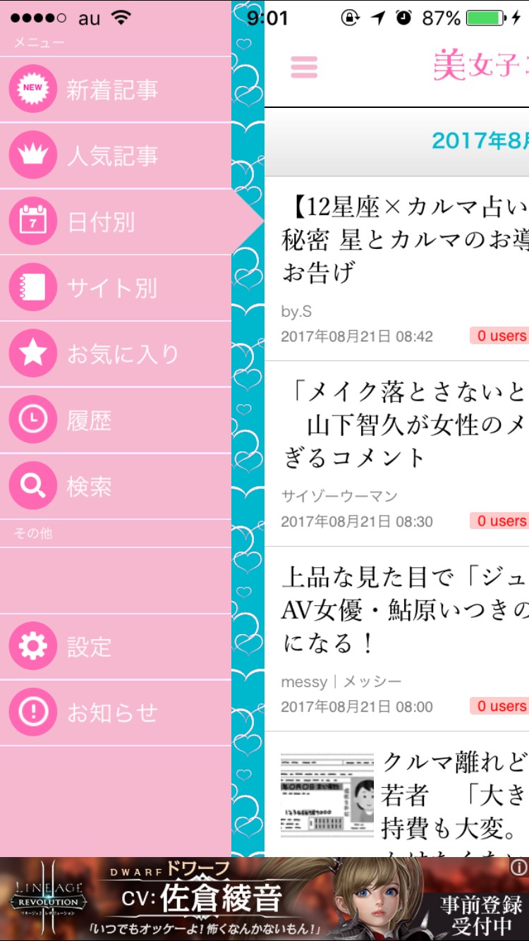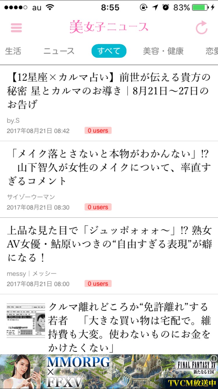 記事系アプリを見ていると「あれが知りたいけど、載ってない!」という時はありませんか?それを解決してくれるのが「「恋愛もダイエットも美容健康も女性向け情報満載の「美女子ニュース」」です。