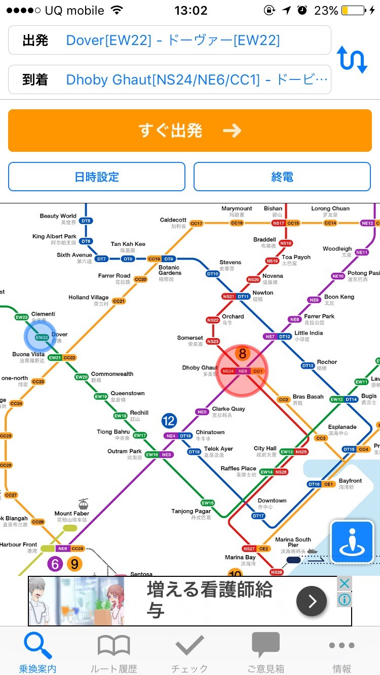 ダウンロード無料で使えるシンガポール電車乗換案内!「NAVITIME Transit」by ナビタイム
