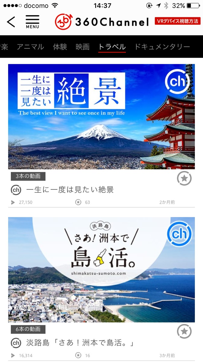 以上が「360Channel」の基本操作になります。是非お気に入りの動画を見つけてみてくださいね!