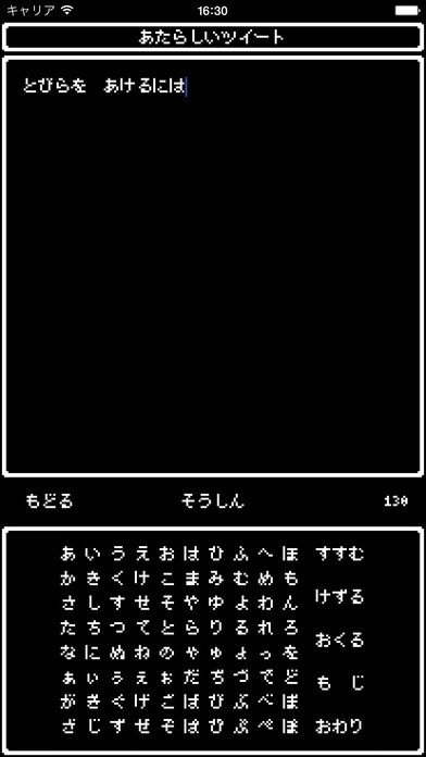 「つぶやく」より、実際に自分もツイートしてみましょう。文字を入力する時にはすでに、独特のフォントに変わっています。