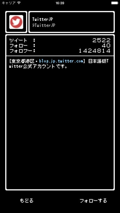 Twitterでは、それぞれ自分の好きな写真をアイコンとして使用しますが、このアプリではアイコンが、よく見ると細かなドットで表現されています。これもまさにゲーム風です。細部までこだわりが、よりリアルさを感じられるでしょう。