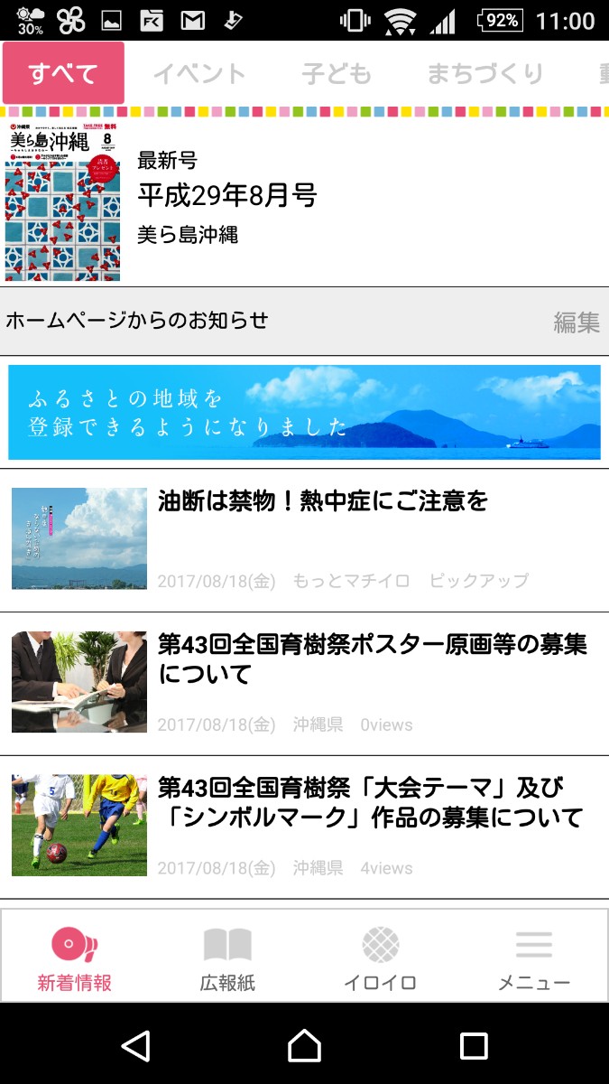 ・新着情報の項目では、あなたが設定した地域の興味のある分野が一覧ですべて表示されます。各分野ごとにチェックしたい場合は、画面上にあるタブバーで分野を選ぶといいでしょう。