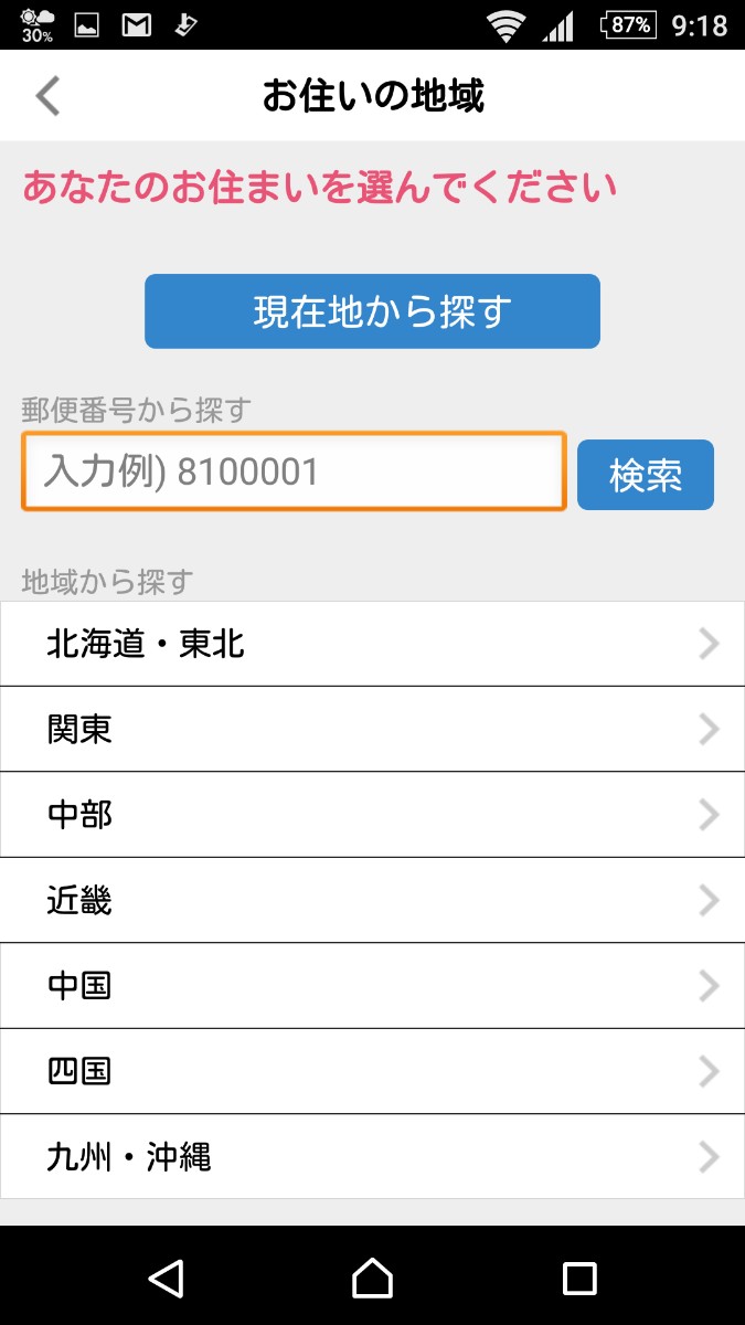 ・「お住まいの地域」を設定。(お住まいの地域は、後から変更することが可能です)
