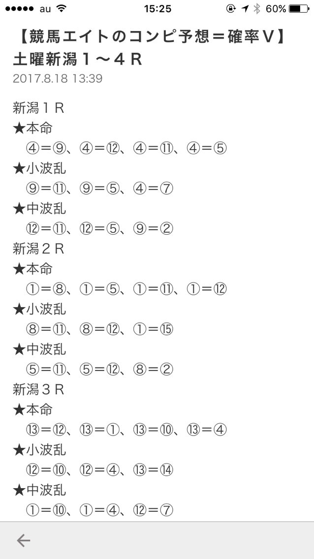 3.画面上部の各コンテンツから「予想」をタップ、各レースの予想が表示される