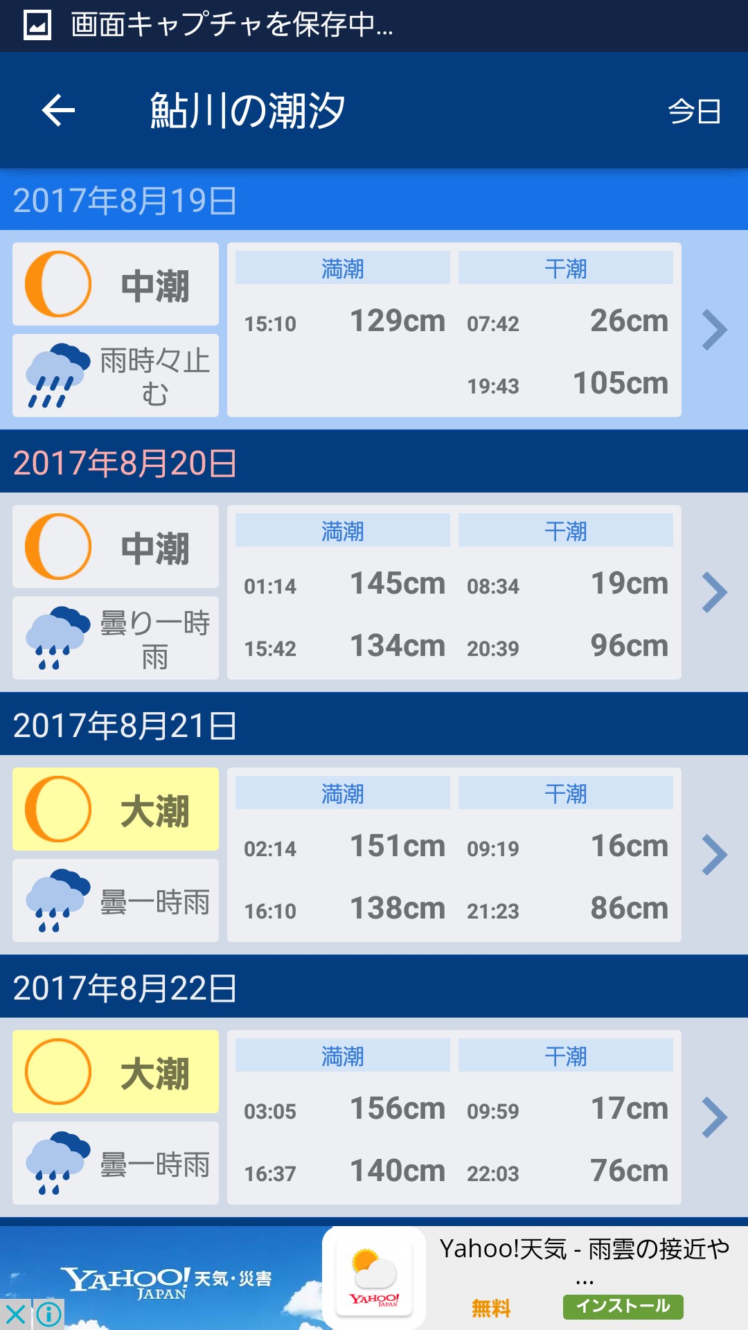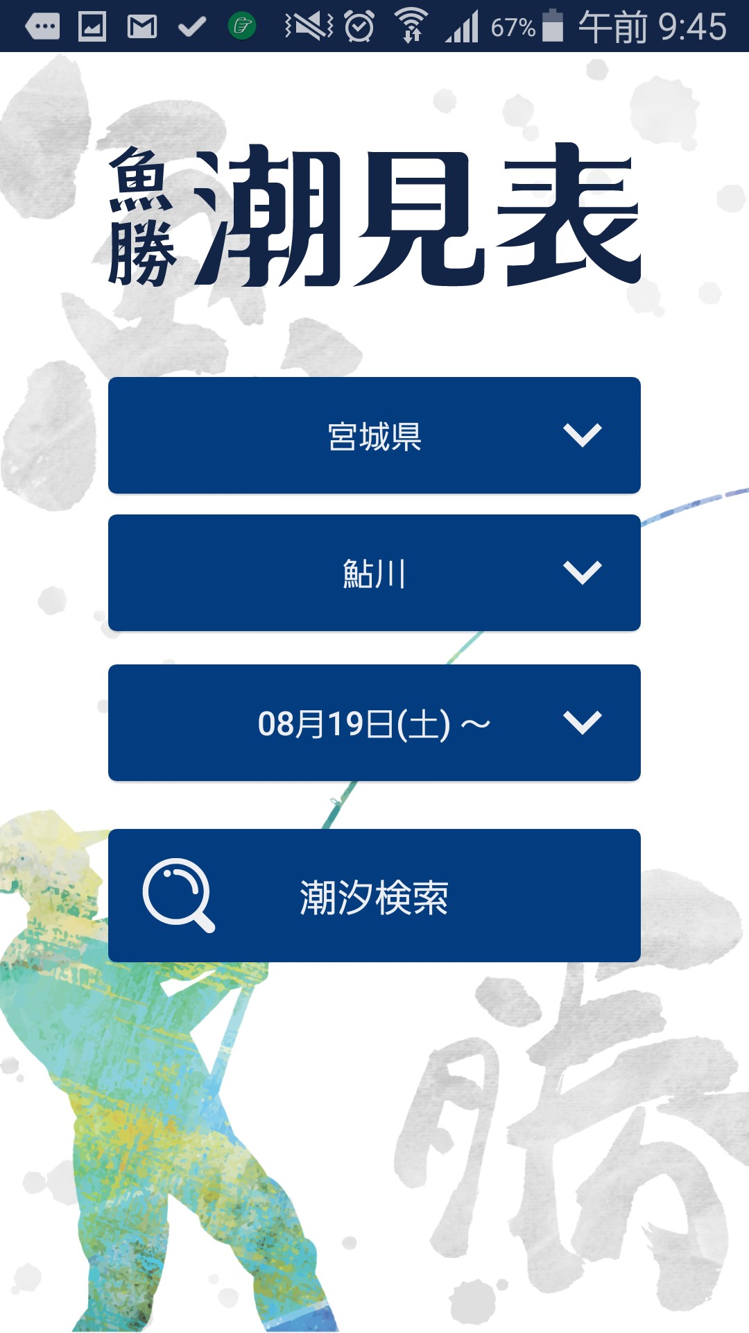 「魚勝 潮見表」は選択するだけで満潮の時刻などを簡単にチェック