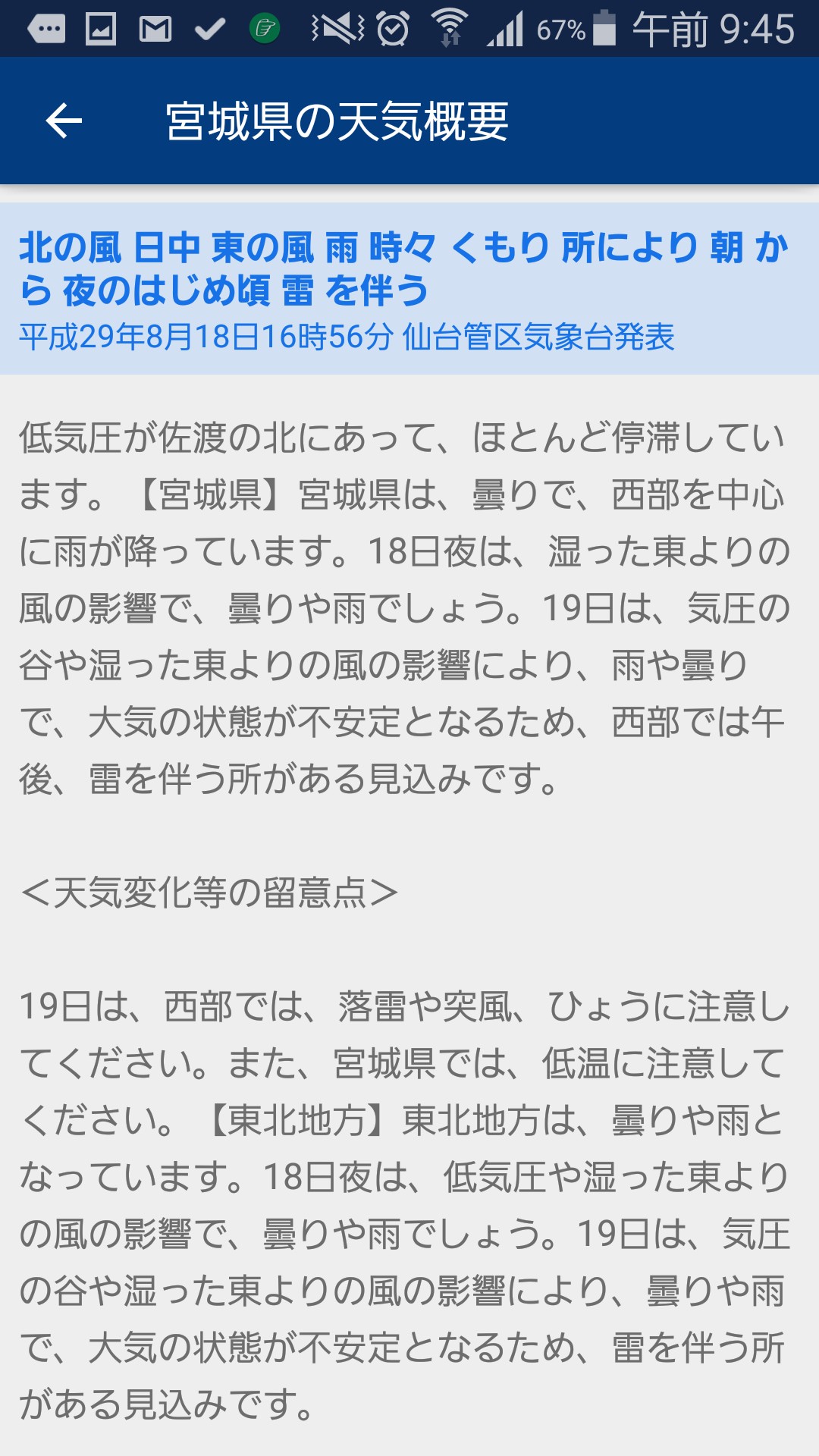 更に、天気をクリックすればそのエリアの詳細な天気を見ることができます。この情報が掲載されているのは当日か翌日のみですが、天気変化等の留意点も書いてありますので、これを読んでおけば安心して釣りを楽しむことができます。