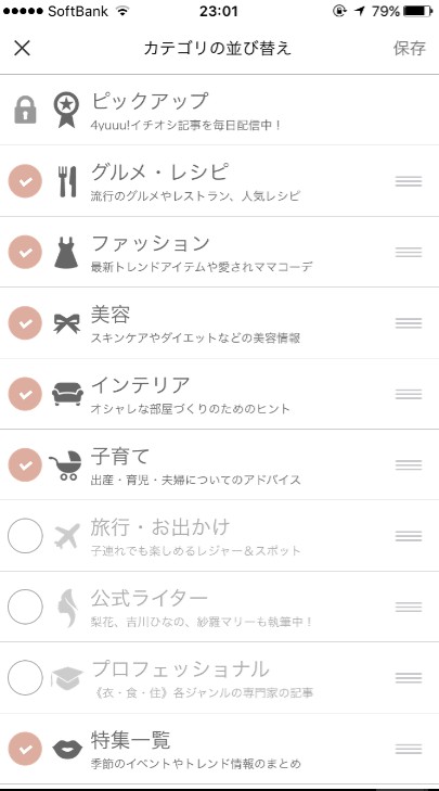 興味があるカテゴリをいち早く確認したい人や、興味がないカテゴリを表示させたくない人は、