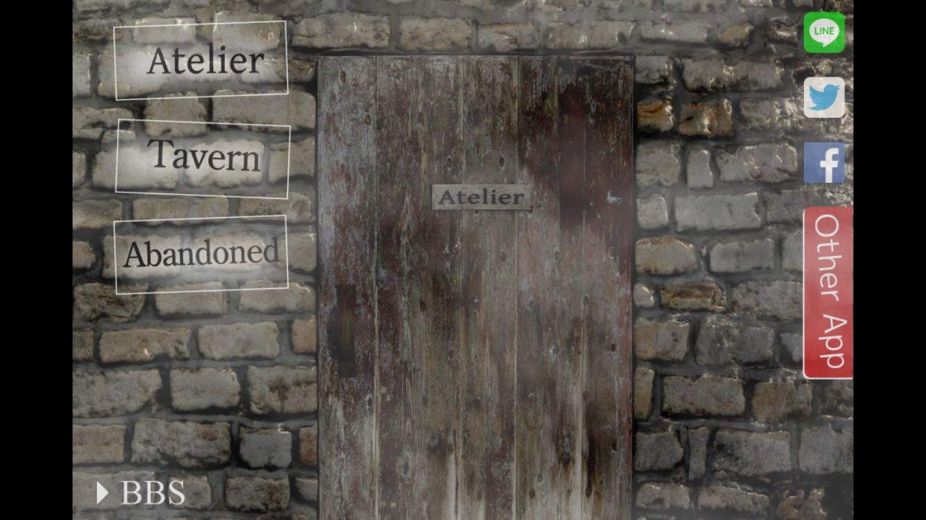 「脱出ゲーム in the fog」は、Atelier、Tavern、Abandonedの3部屋に入ることができ、クリアをせずに好きな場所からはじめらるので、とりあえず最初に全部に入って部屋を見て決めるのもいいですね。