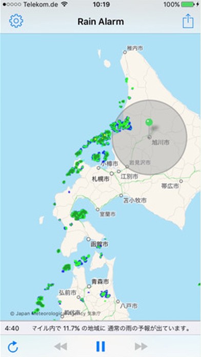 「雨アラーム」は通常の天気予報アプリより優れているところがあります。雨アラームはその名の通り「アラーム」で、つまり雨が近づいていることを、警告音で知らせてくれるというすぐれもの。しかもGPS(位置情報)からまさにあなたがいるピンポイントの場所での予測を行うのですから精密さにおいても言うことないです。逆に広域での雨雲の情報を具体的に知りたいと思ったときでも、日本地図からレーダー図を見ることも可能です。どれくらいの規模で雨が迫ってきているのか動きでわかるため、一時的に凌げばいいのかこの後もしばらく降り続けるのか、も視覚で確認できます。こういう機能は外出先でも、旅行先でも、この後どこに行くと雨を避けられそうか?などの行動を決めることが必要な状態の人達にもとても便利なアプリだといえます。