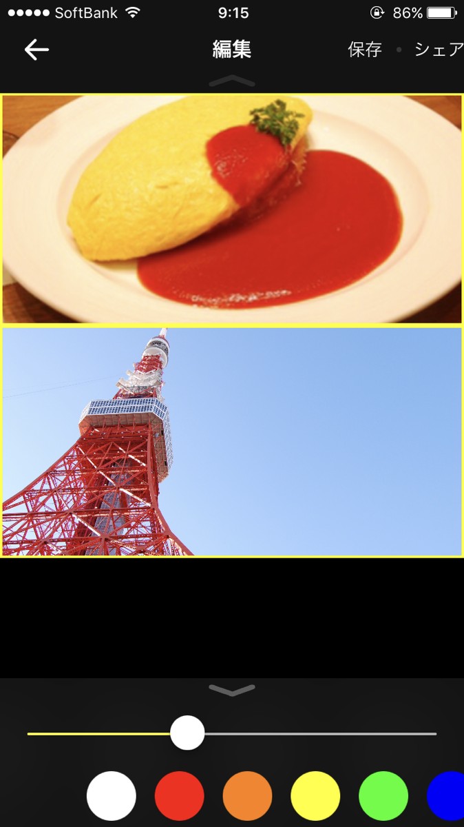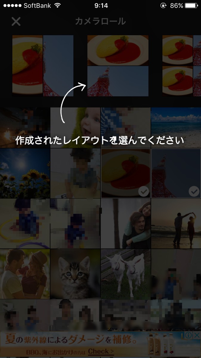 2.選択したら、画面上に自動でレイアウトされた写真がいくつか並んでいます。好みのものを選択したら次の編集画面に移動します。