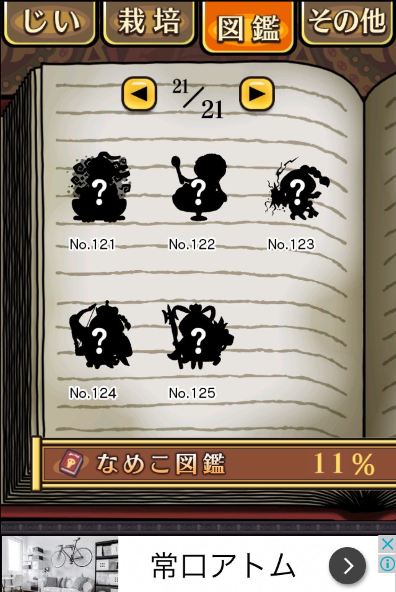 収穫したなめこは「なめこ図鑑」に登録されていきます。
