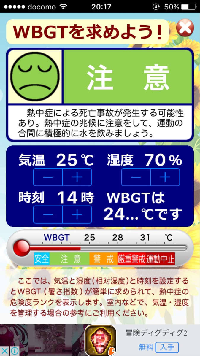 「熱中症予報計」わかりやすい表示で簡単にチェックできました