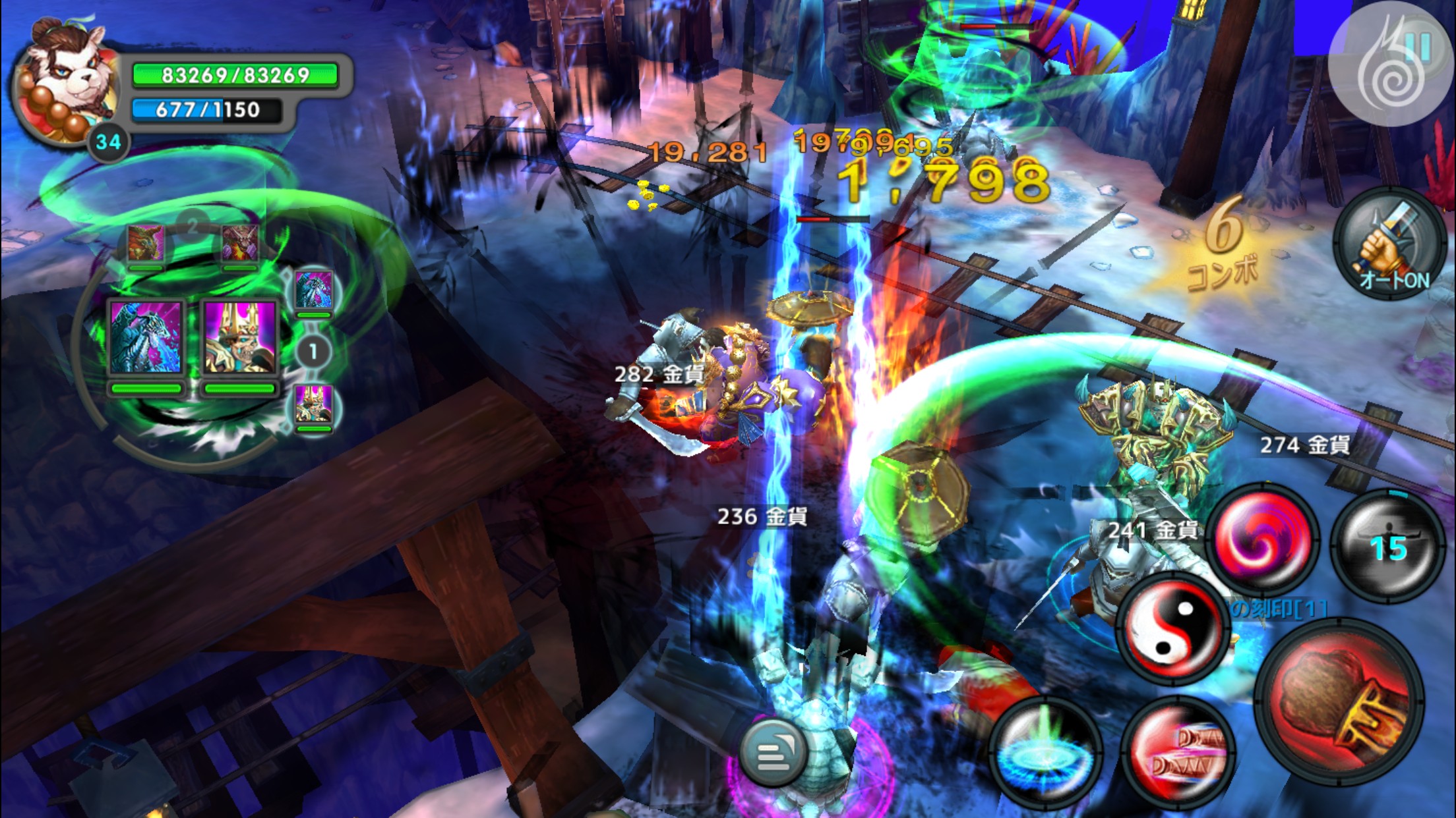 画面右上の「オートON」ボタンをタップすることで、すべての攻撃を自動で行ってくれます。