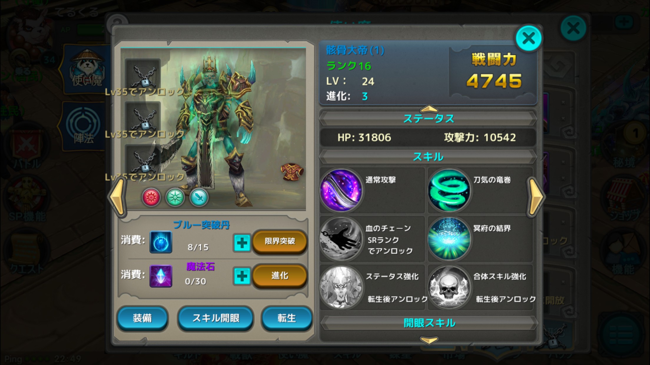 レベルをあげることで使い魔のスキルも操作することができるようになります。